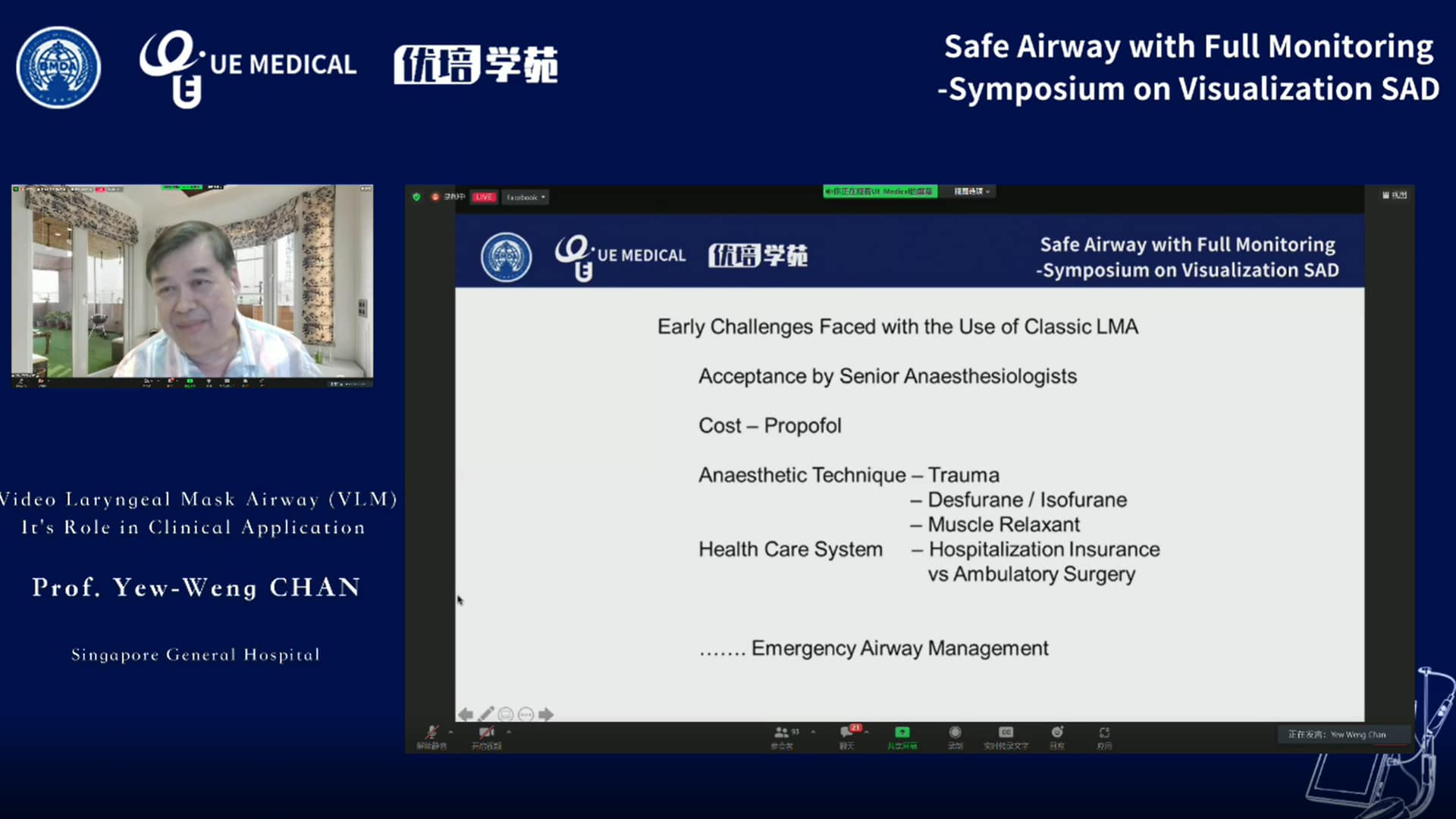 作为优亿可视喉罩的发明人,左教授从气道管理工具的沿革历史出发,提出了安全的气道管理是麻醉医生的首要任务。他介绍了可视喉罩的设计和创新理念,指出可视喉罩作为第三代喉罩,在第二代喉罩的基础上结合可视化技术,其设计能够满足通气和插管的需求。左教授总结了近期临床发表的论文,来说明可视喉罩的使用特点和临床优势。