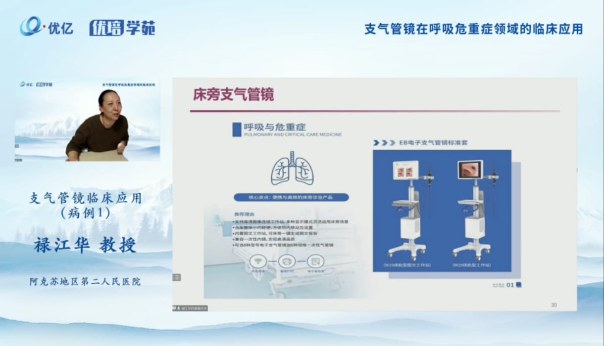 梁志欣教授详细介绍了便携式支气管镜临床应用的诊断适应症、治疗适应症,床旁诊治电子支气管镜系统的优势、一次性支气管镜外源性感染常见因素、临床使用案例等。