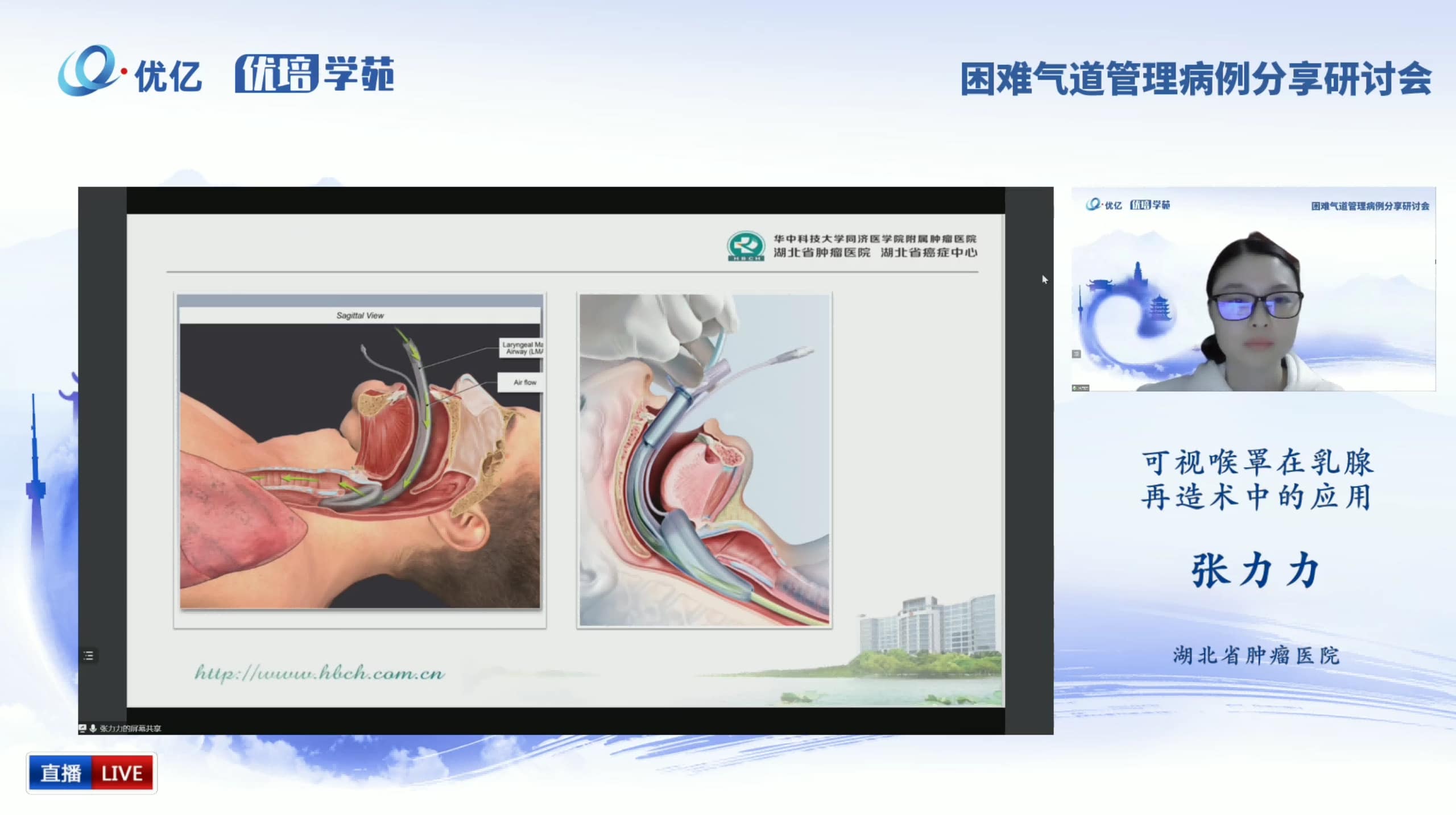 张力力医师从喉罩应用指南、可视喉罩的发展、可视喉罩的应用和病例分享四个内容,就可视喉罩在乳腺再造术中的应用进行了详细的汇报,分享结束后刘义树教授针进行了点评讨论。